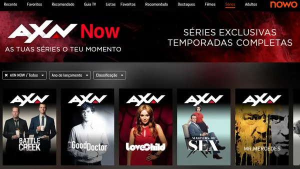 A partir do dia 4 de agosto o serviço on demand AXN Now, sem custos adicionais para clientes BOX Android TV 4K e NOWO TV, vai contar com um catálogo forte que inclui séries completas dos grandes sucessos que passam nos canais, como The Good Doctor, SWAT, Love Child, Masters of Sex, entre outros, mas também séries exclusivas como Battle Creek, Mrs. Mercedes ou Outsiders.
